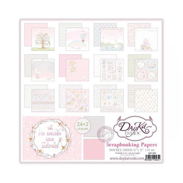 Set 24 Papeles Scrap 20x20cm Lullaby Baby Girl Papers For You Set 24 Papeles Scrap 20x20c...