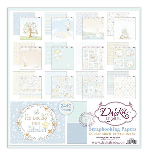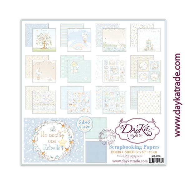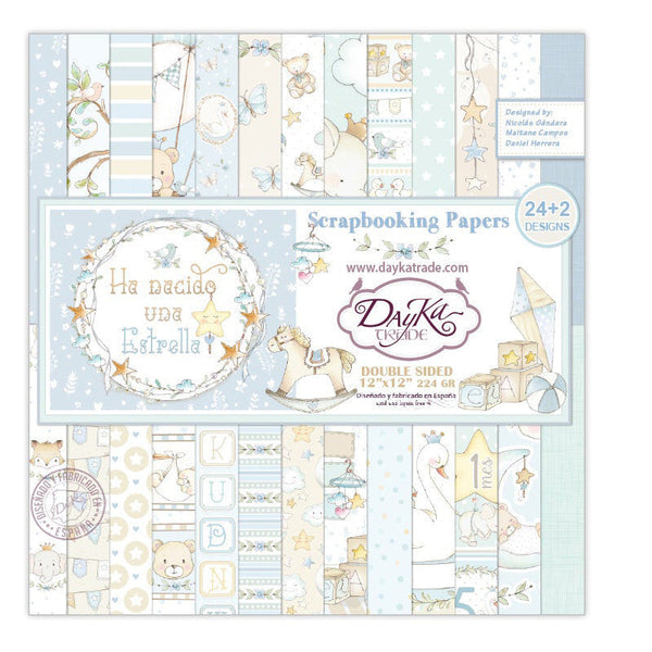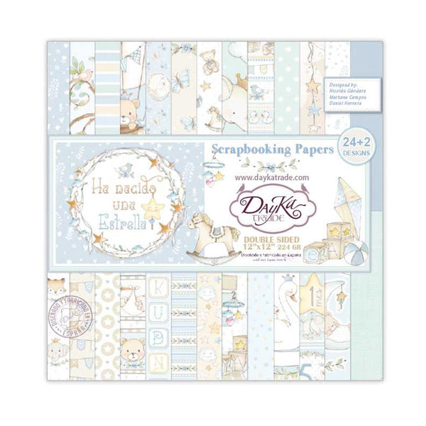 Set 24 Papeles Scrap 20x20cm Lullaby Baby Boy Papers For You Set 24 Papeles Scrap 20x20c...
