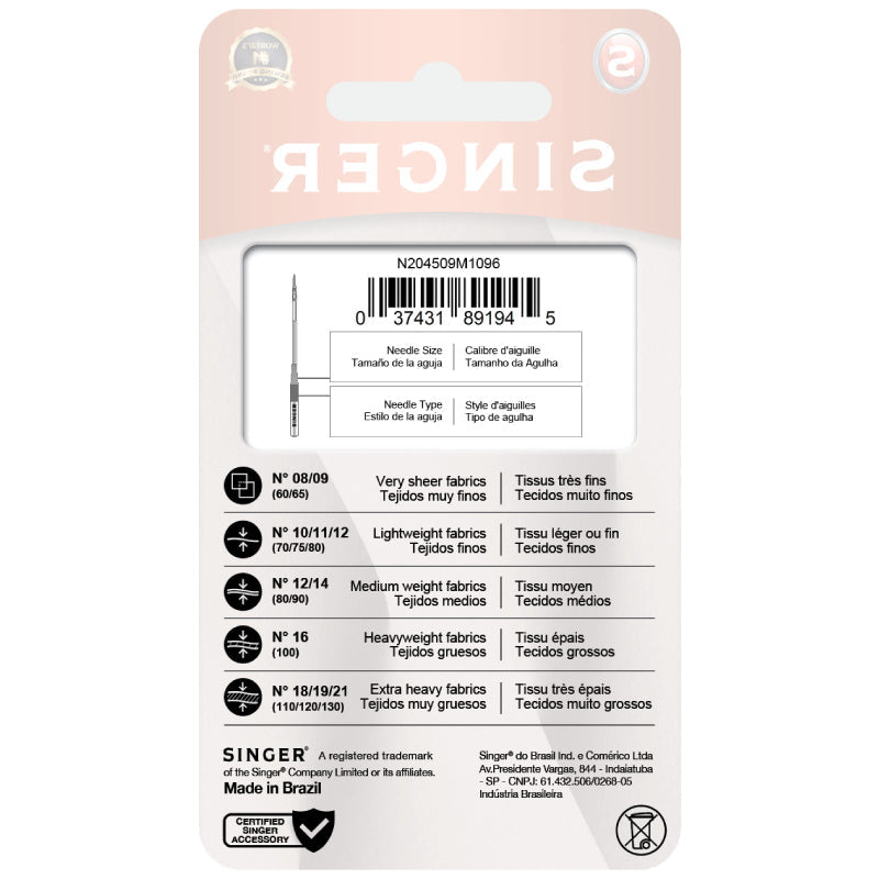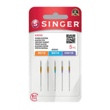 Paquete de 5 agujas de coser a máquina para tejidos elásticos, en 3 tamaños surtidos de la marca SINGER.