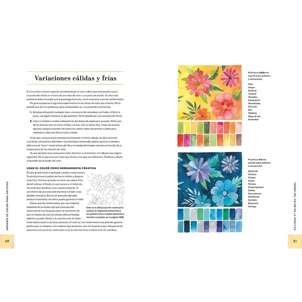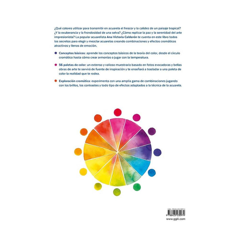 Armonía de color para artistas: Guía para crear combinaciones bellas y personales en acuarela de la editorial GG. ¿Qué colores utilizar para transmitir en acuarela el frescor y la calidez de un paisaje tropical? ¿Y la exuberancia y la frondosidad de una selva? ¿Cómo replicar la paz y la serenidad del arte impresionista? La popular acuarelista Ana Victoria Calderón te cuenta en este libro todos los secretos para elegir y mezclar acuarelas creando combinaciones y efectos cromáticos atractivos y llenos de emoción.