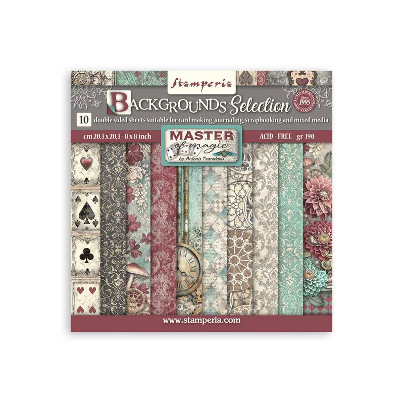 Bloc de 10 Hojas Scrap a Doble Cara Backrounds de la marca Stamperia de la colección 'Master of Magic'