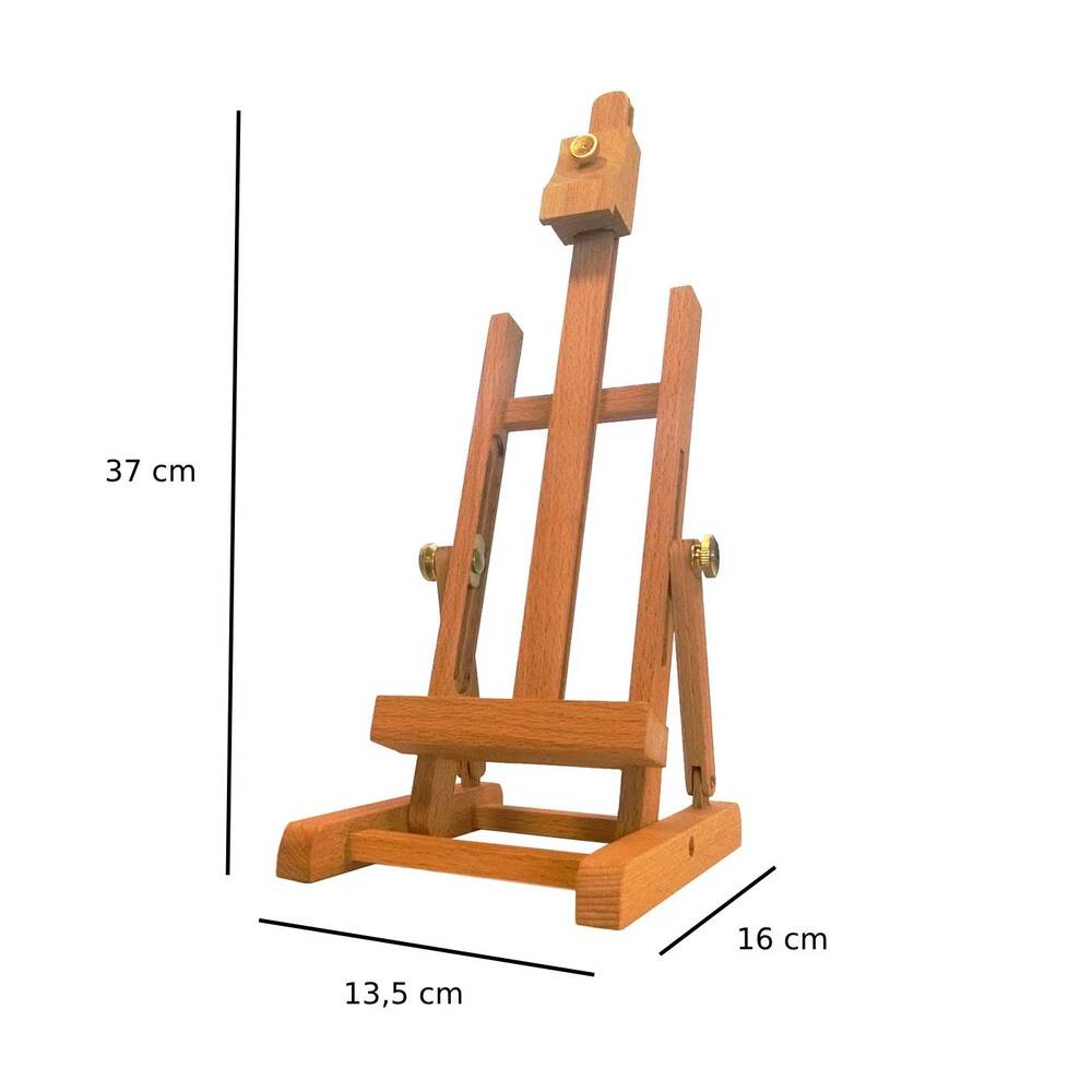 Fabricado en madera de haya de alta calidad, este caballete ofrece una estructura ligera (320g) pero resistente y te permite ajustar fácilmente la inclinación y altura del lienzo para obtener la postura perfecta mientras trabajas. Es compatible con bastidores pequeños y medianos, siendo ideal para formatos de hasta 26 cm.