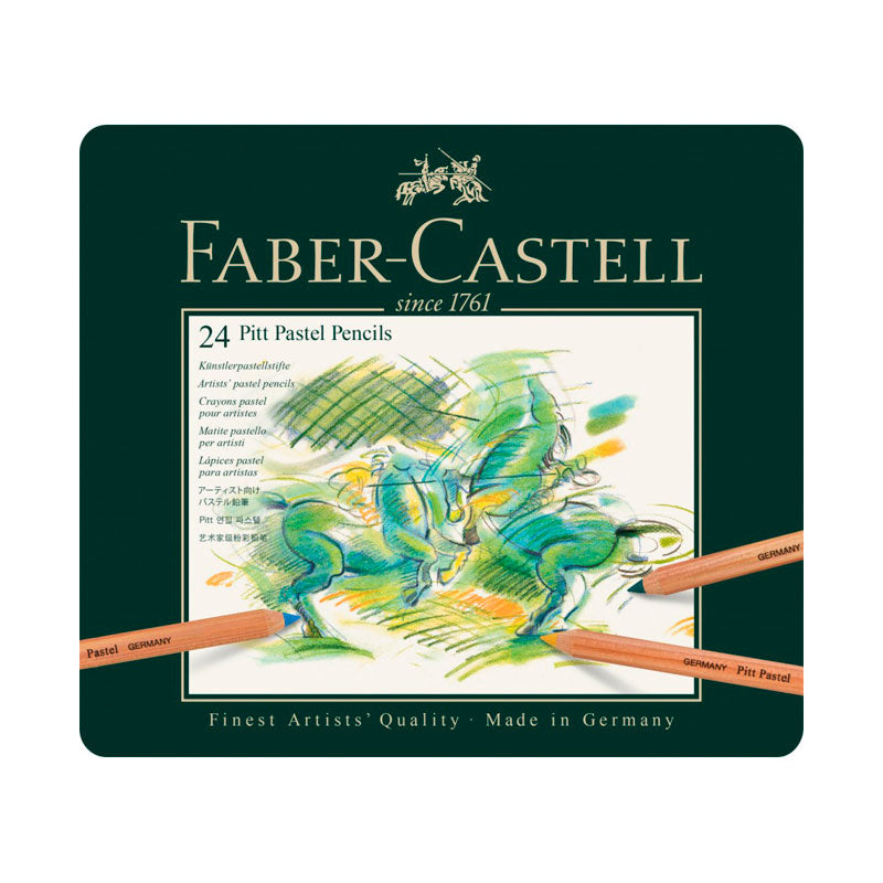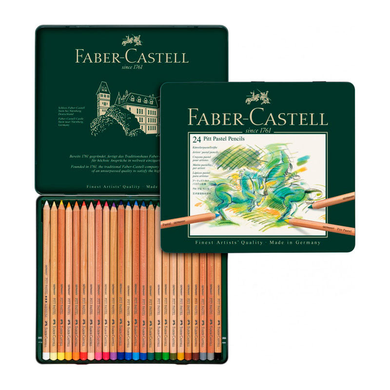 Estuche de metal de 24 Lápices de color Pastel de la marca Faber Castell.