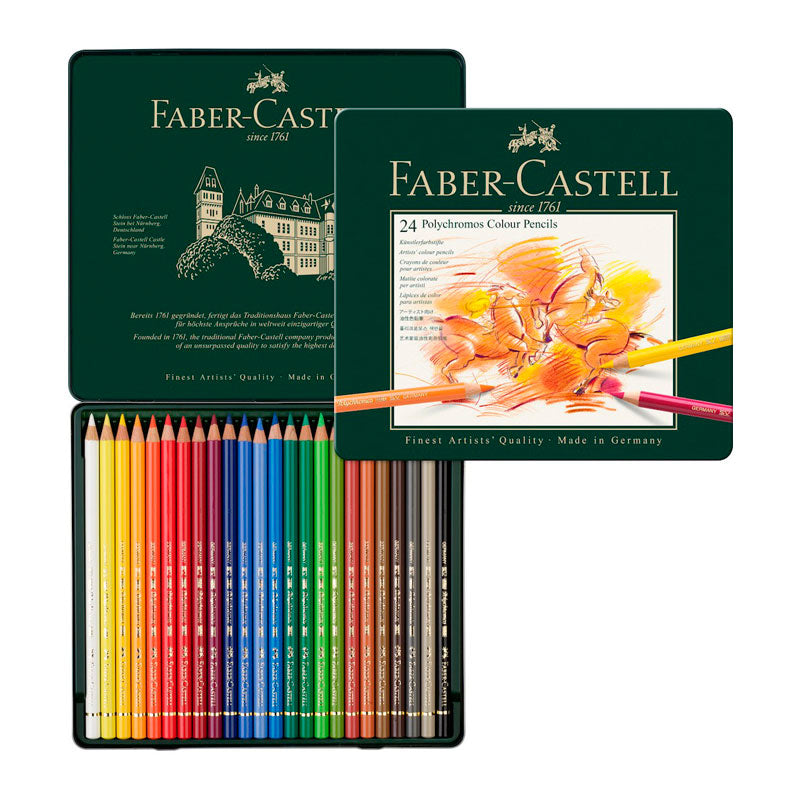 Caja de 24 Lápices Polychromos de la marca Faber Castell.