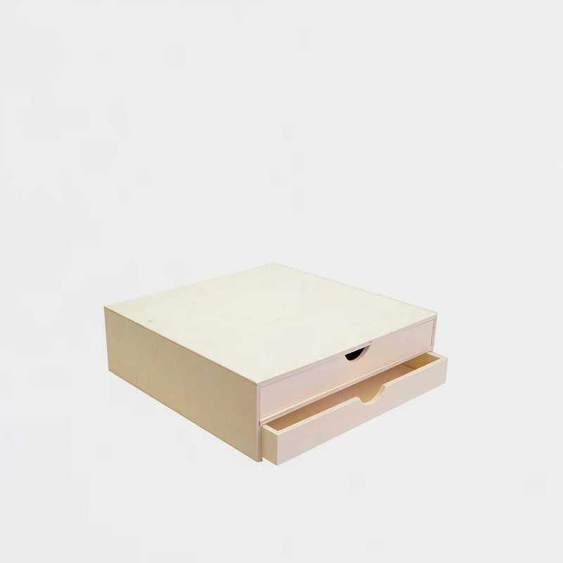 Cajonera de madera con dos cajones perfecta para guardar todos tis papeles de scrap limpios y ordenados.