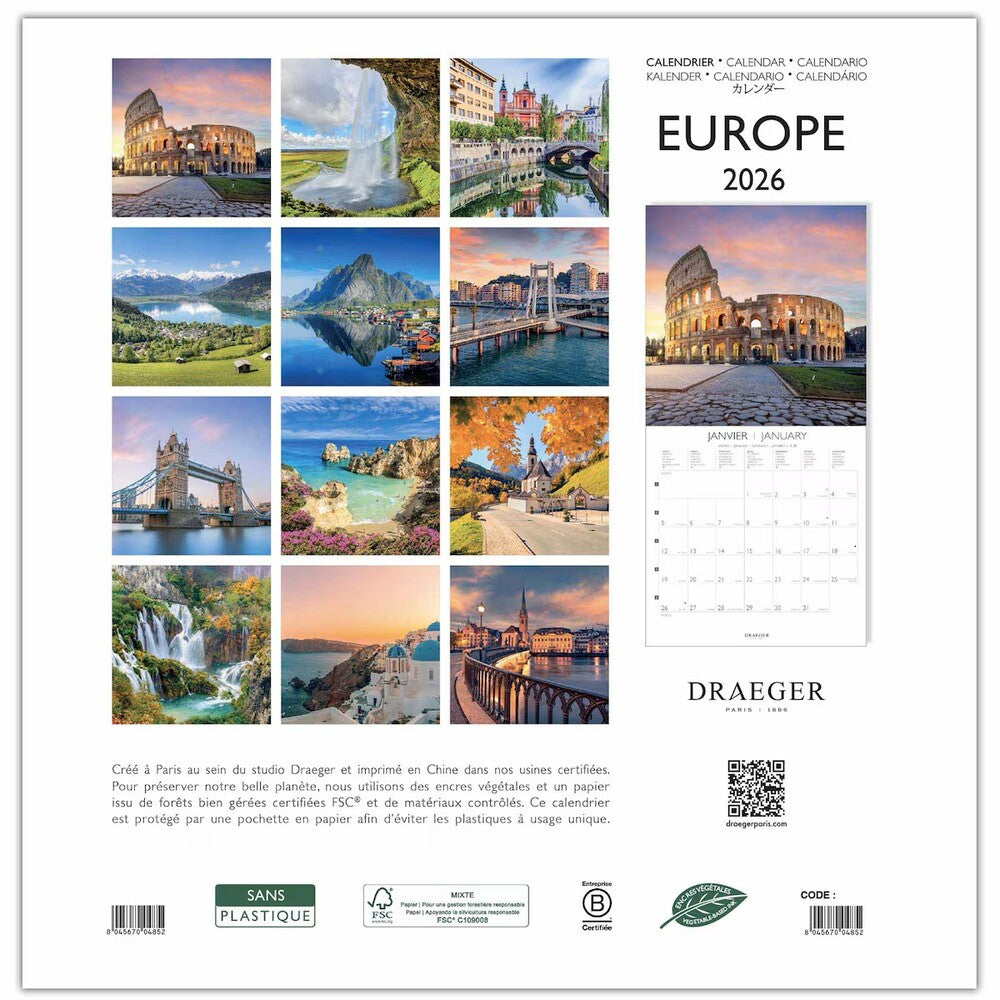 Calendario de Pared 2026 Europe Grande de la marca Draeger