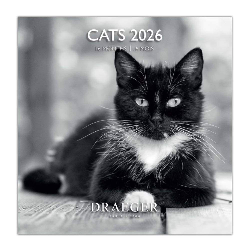 Calendario de Pared 2026 Gatos Blanco y Negro Grande de la marca Draeger