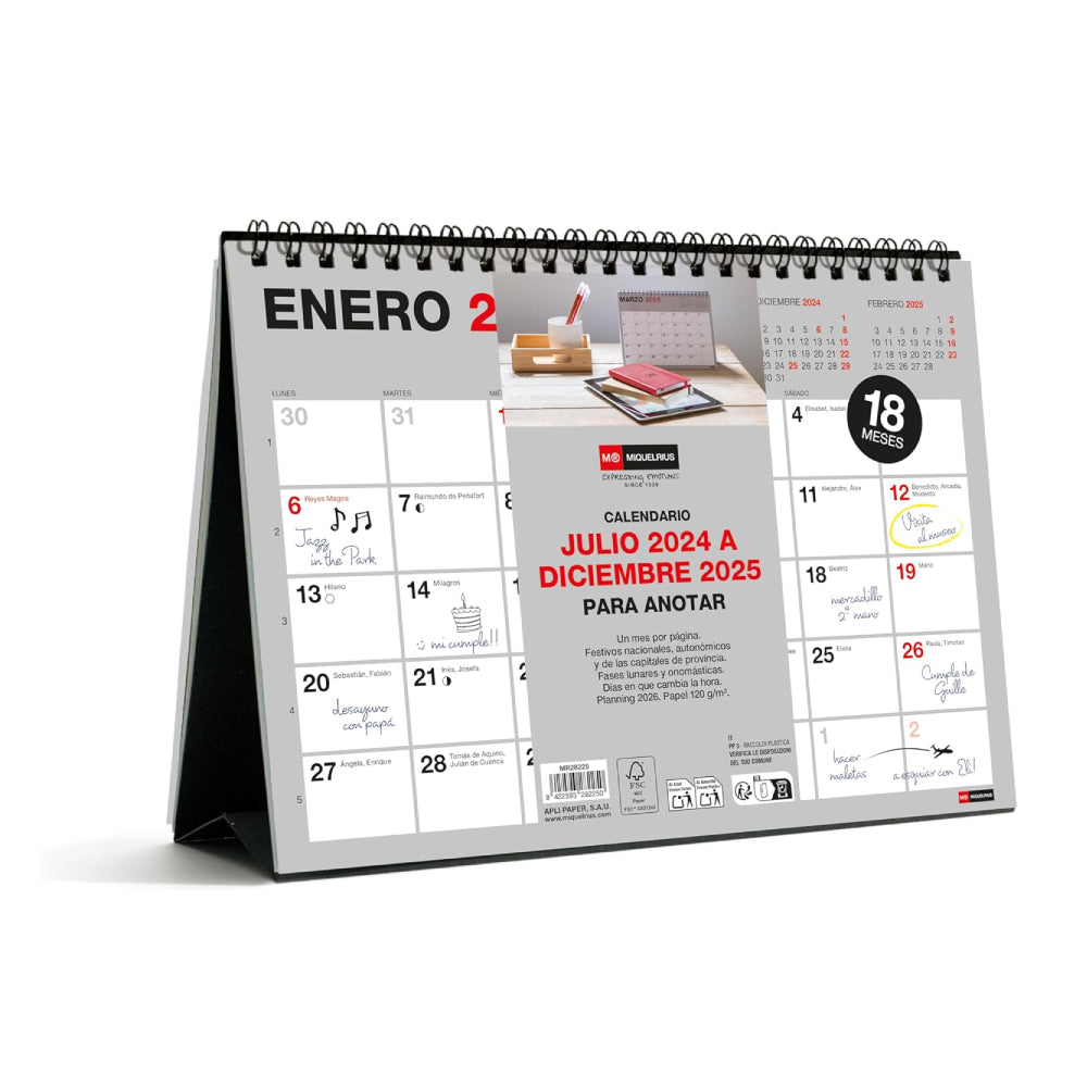 Calendario A5 Básico 18 meses Sobremesa 2024/2025 de la marca Miquelrius.