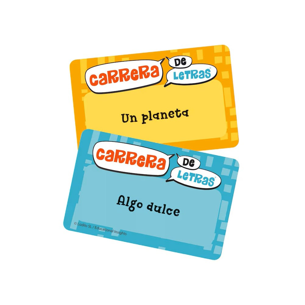 Demuestra tus reflejos y tu agilidad mental con Carrera de Letras, el juego familiar de Lúdilo en el que deberás formar palabras largas antes que tus rivales. Cada ronda comienza con una pregunta o pista, y los jugadores deben construir rápidamente una palabra relacionada empleando el mayor número de letras posible. Así, la ficha de esa letra se desplaza una casilla hacia el lado del equipo que la haya empleado,