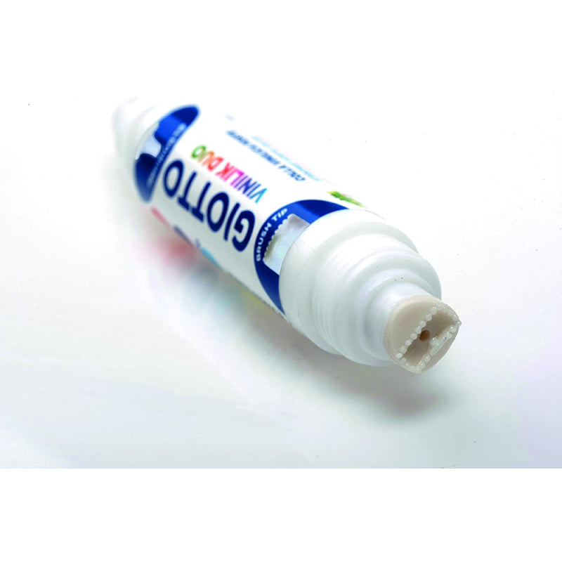 La cola blanca Giotto está formulada sin disolventes y no es tóxica. Pega gran variedad de materiales de manera rápida y sencilla. Su práctico formato en stick tiene doble punta, una más fina y precisa para pequeñas áreas y otra más amplia con pequeñas hendiduras que distribuyen la cola perfectamente en superfícies más amplias.