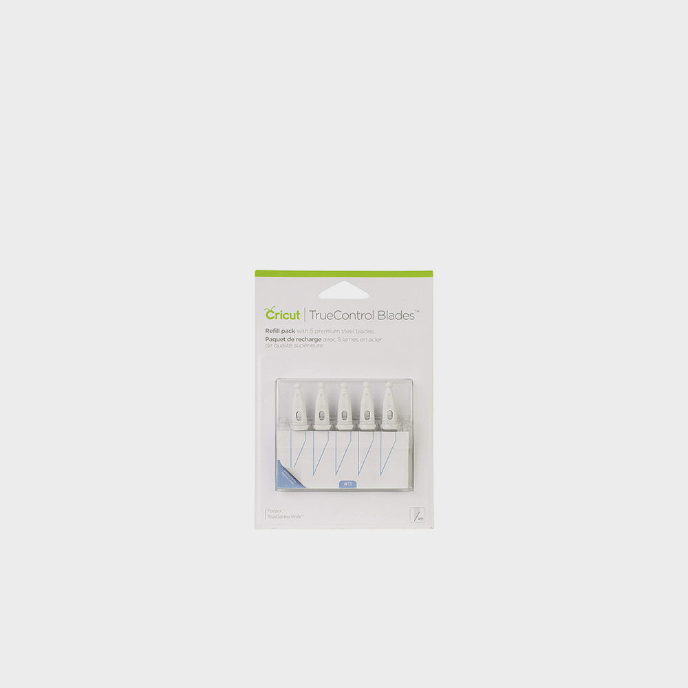 Paquete de recarga con cinco hojas de acero premium diseñadas específicamente para TrueControl Knife (se vende por separado). Con bordes afilados y puntas de perforación, estas cinco hojas de repuesto diseñadas para el cuchillo TrueControl cortan una amplia variedad de materiales, que incluyen papel, cartulina, plásticos delgados, lienzos y más. Un útil cartucho de almacenamiento hace que sea fácil y seguro rastrear y desechar las cuchillas usadas. Para usar sólo con el cúter TrueControl Knife de Cricut (disponible en mint y azul)