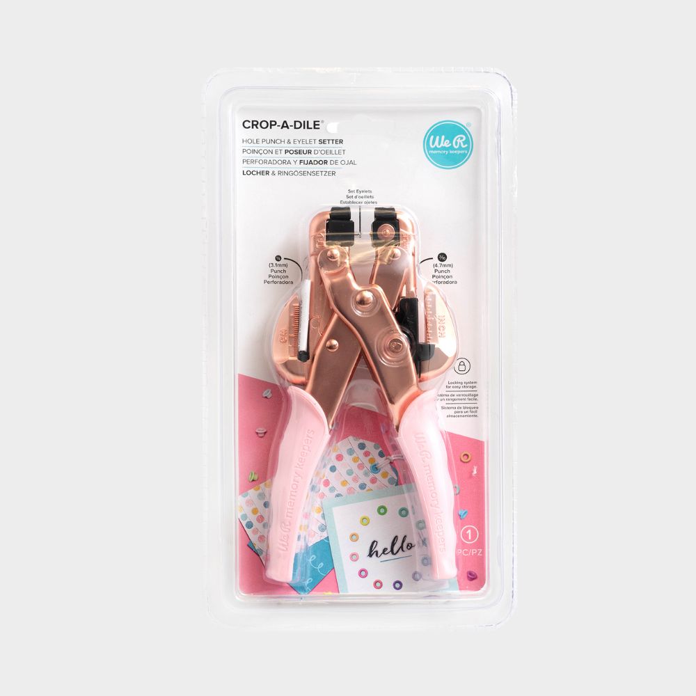 Crop-A-Dile Rose Gold es una herramienta multimaterial con la que podrás perforar agujeros y colocación de ojales de forma fácil y precisa en multitud de materiales.