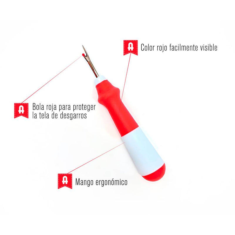 Para usarlo, simplemente coloca la punta sobre el hilo que deseas retirar y empuja hacia adelante para cortar con total eficacia. Ideal para costureros, artesanos y entusiastas de la costura que buscan resultados profesionales en cada proyecto.