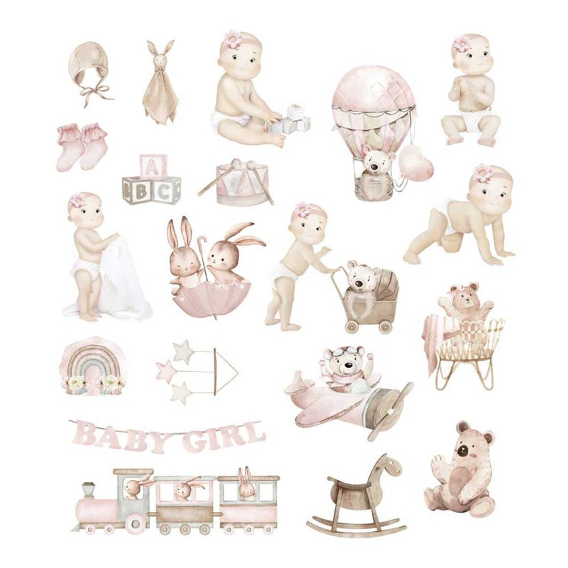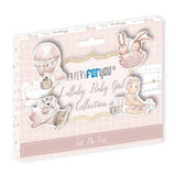 Die Cuts pertenecientes a la colección Lullaby Baby Girl, con diferentes diseños de bebé en tonos rosas claro.