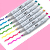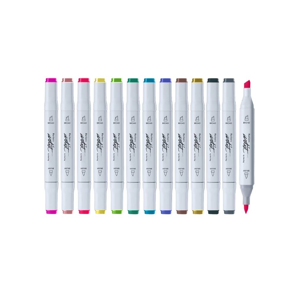 Estos rotuladores tienen una doble punta: una de pincel ideal para dibujar, caligrafía y lettering, y una biselada perfecta para dibujo artístico, cómics y manga. Su cuerpo robusto tiene un diseño ergonómico como los marcadores profesionales, con dos tapones herméticos para mantener los colores frescos. La tinta a base de alcohol permite una mezcla de colores perfecta.