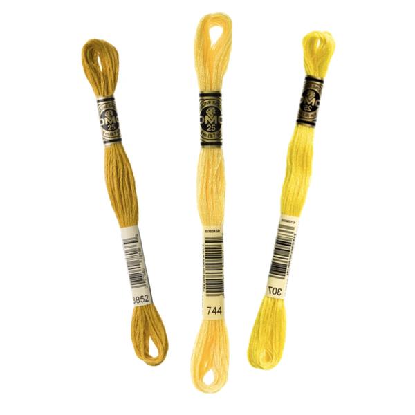 Hilo de bordar Mouliné Special 117MC, colores de la gama de tonos amarillos, de la marca DMC.