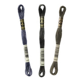 Hilo de bordar Mouliné Special 117MC, colores de la gama de tonos oscuros, de la marca DMC.