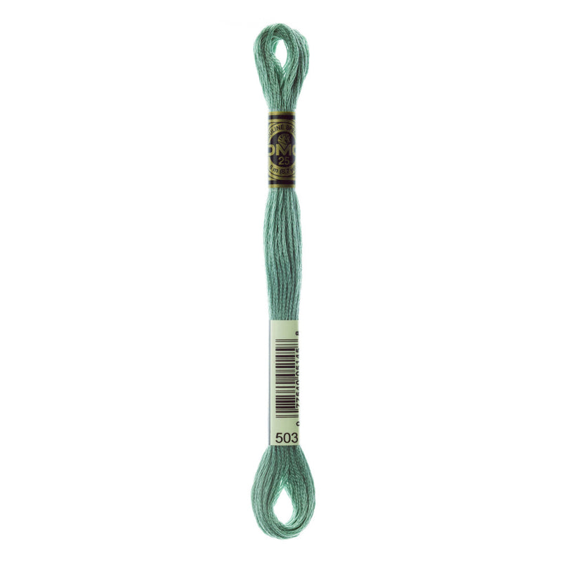 Hilo de bordar Mouliné Special 117MC, colores de la gama de tonos turquesas, de la marca DMC.