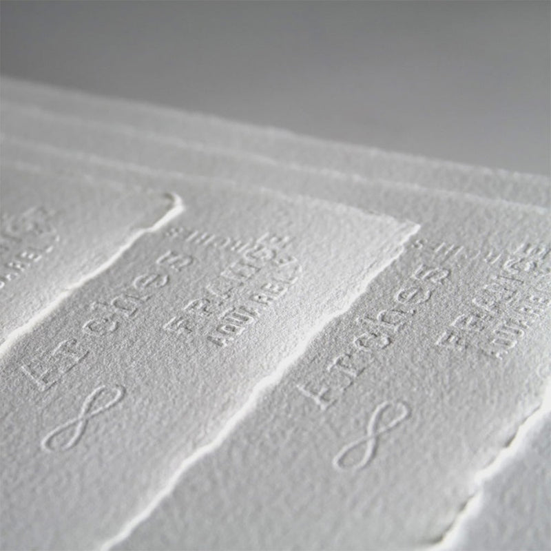 Hoja de acuarela de alta calidad 100% algodón. Característica por su secado al aire, tiene un tratamiento contra la humedad. Su fabricación es de estilo antiguo en máquina de rodillos consiguiendo un grano armonioso y variado, tanto grueso como fino o satinado.