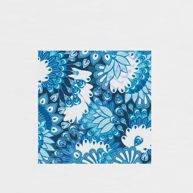 Características: papel fino y muy resistente especial para decoración y forrado de todo tipo de objetos. Estampado de colores blancos y azules con motivos florales y abstractos.