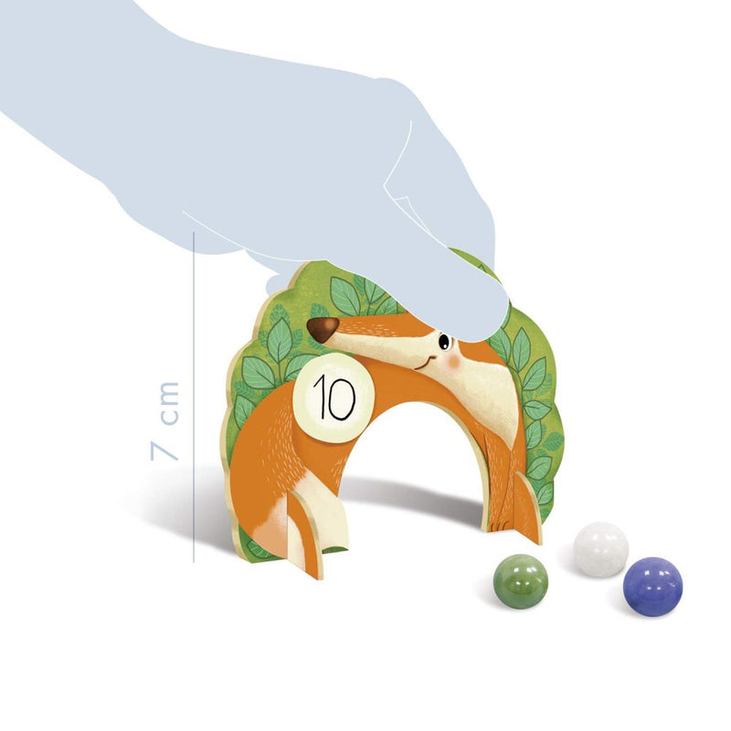 El Juego de Canicas de la marca Avenue Mandarine es un cofre que contiene una bolsa de canicas y 9 obstáculos para crear bonitos circuitos ambientados en la naturaleza.