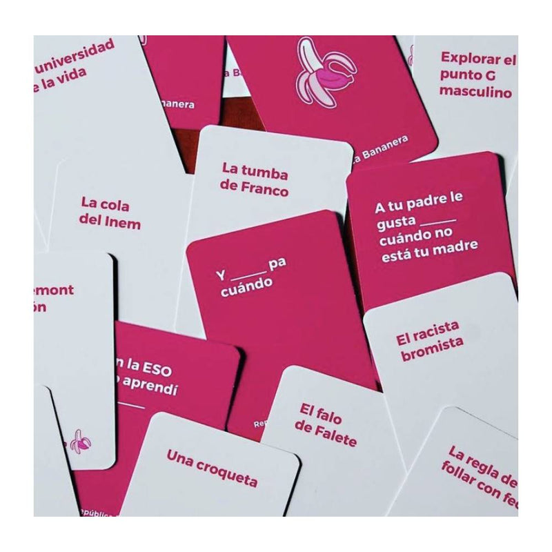 - El presidente será el encargado de sacar una carta rosa con un espacio que tendrá que rellenarse con el contenido de las cartas blancas que aporten los demás jugadores.