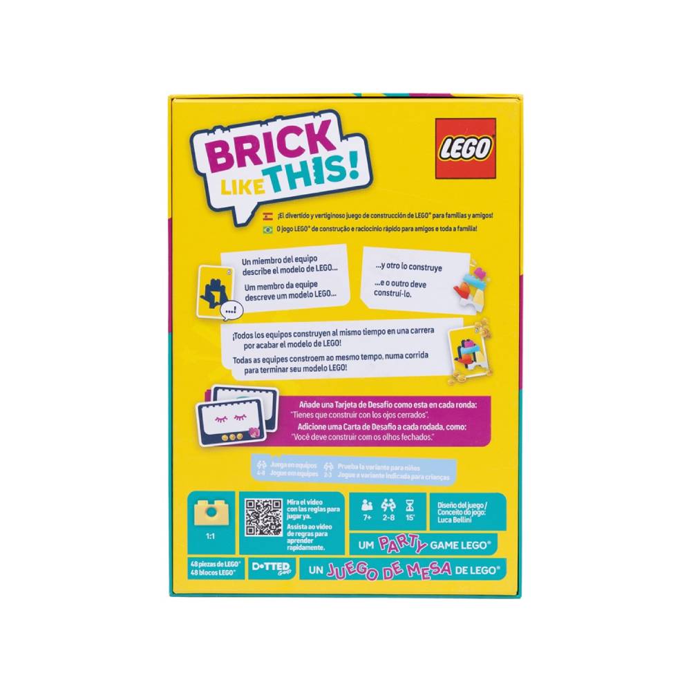 Descubre Brick Like This!, el nuevo Juego de Mesa de LEGO, una propuesta dinámica y original perfecta para jugar en familia. ¡Ideal para niños y niñas mayores de 7 años! Se compite por equipos de 2 jugadores, así que podréis sacar vuestro lado más competitivo.
