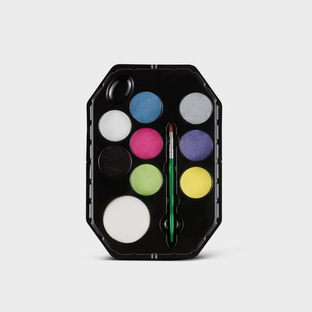 Modo de uso: añade agua al pincel o a la esponja para activar la pintura. Al terminar, limpiar la piel con agua y jabón.