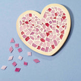 Este kit contiene todo el material necesario para formar un precioso mosaico en soporte de madera. Comienza aplicando el pegamento y distribuyendo los mosaicos como más te guste y deja secar. A continuación aplica la masilla para crear una forma uniforme y los mosaicos queden unidos al soporte de madera.