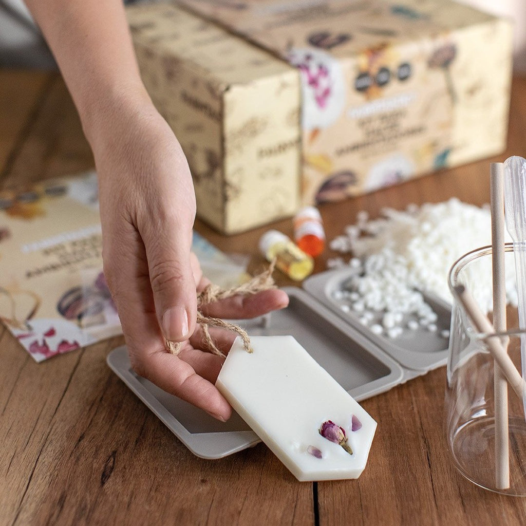 Déjate sorprender por el nuevo Kit para hacer Ambientadores caseros personalizados a base de cera de soja. Podrás utilizar los ambientadores para darle un aroma único y personal a tus cajones, armarios, habitaciones o incluso a tu coche... sus aceites esenciales ecológicos de canela y naranja le aportarán frescura a tus espacios.