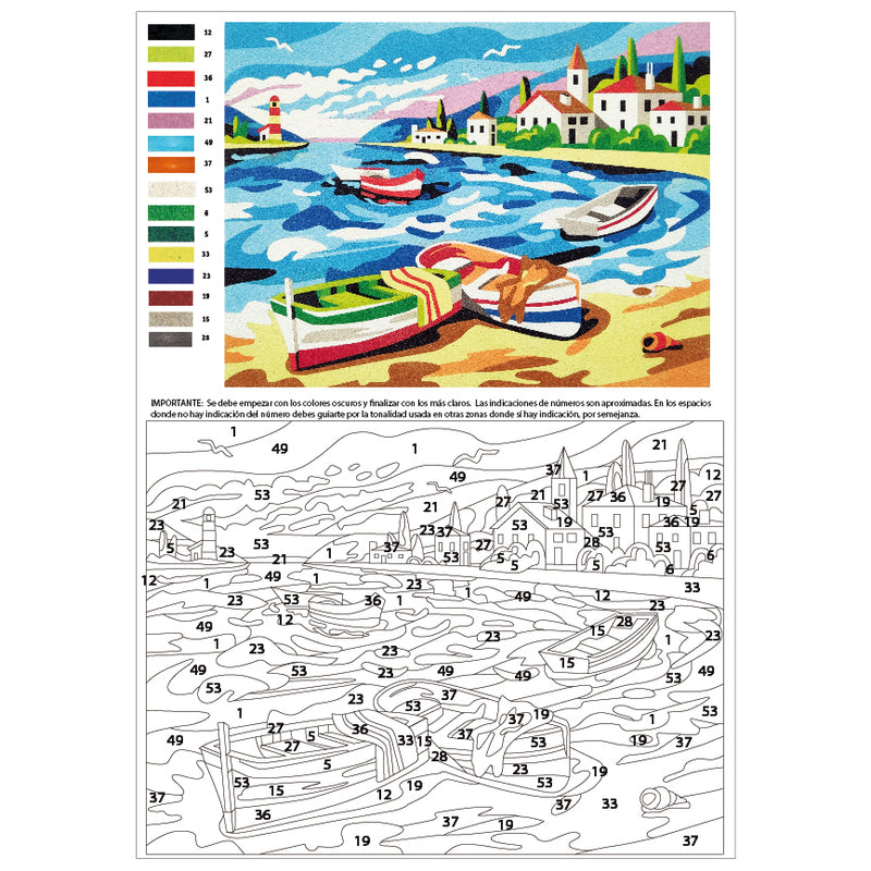 • ilustración de la lámina pintada como ejemplo y con un mapa de números por colores
