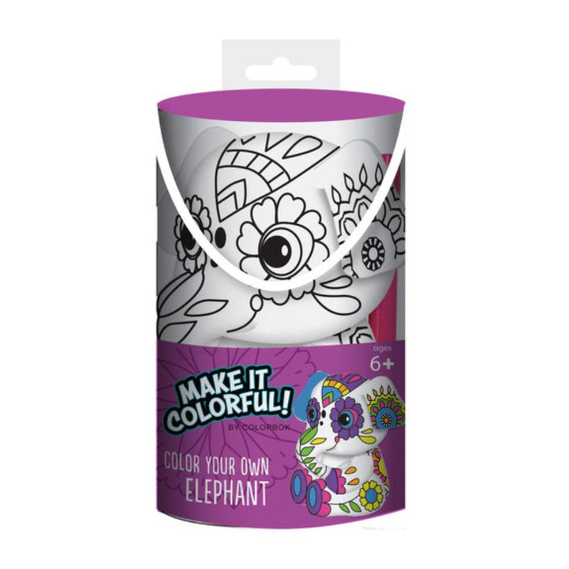 Kit de 6 rotulaores y un peluche de elefante para colorearlo a tu gusto dejando volar tu imaginación y creatividad.