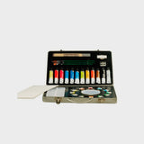 Un set completo de iniciación a la acuarela que se presenta en un estuche maletín metálico para que puedas tenerlo todo organizado en un único lugar sin ocupar mucho espacio. Perfecto para regalar o para que te regalen.