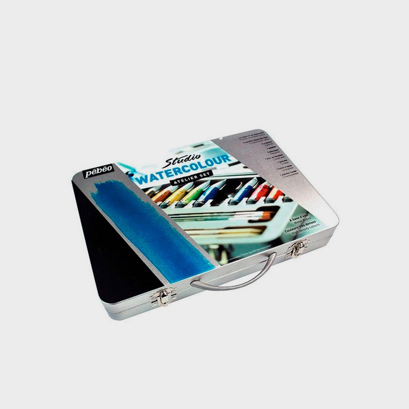 Set completo de iniciación a la acuarela en maletín de metal, de la marca Pebeo.