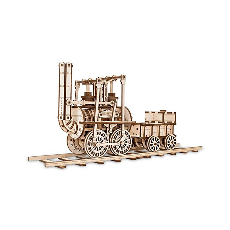 Este set de maqueta contiene 325 piezas de madera para construir un puzzle mecánico 3D con forma de tren. Este tren está inspirado en el primer tren de vapor público, construido en 1825 en Inglaterra. Aparte del tren, cuentas con un fragmento de ferrocarril para más realismo.