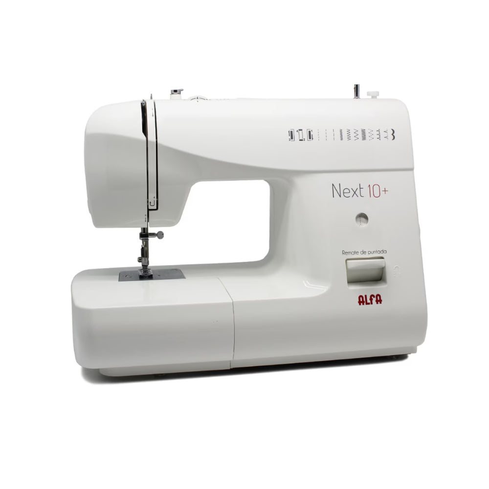 VIDEO Máquina de coser mecánica 10 Next Plus de la marca Alfa. La máquina de coser Alfa Next 10+ es la máquina ideal para dar tus primeras puntadas e iniciarte en el mundo de la costura. Es fácil de manejar, intuitiva y ligera. Con sus 12 diseños de puntada te permitirá hacer tus propios arreglillos: coger los bajos de los vaqueros, poner botones, coser cremalleras e incluso zurcir.