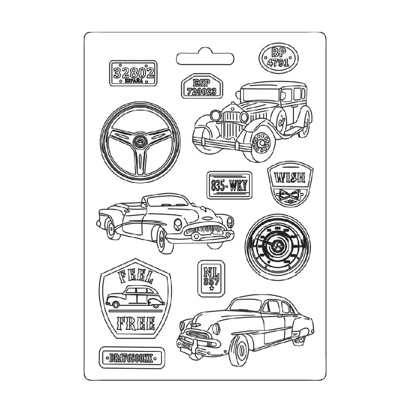 Molde Flexible Coches Vintage tamaño A4 de la marca Stamperia