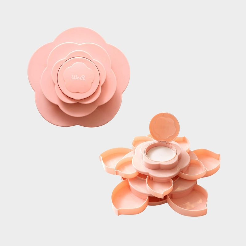 Una manera de tenerlo todo recogido pero muy a la vista con tan solo girar la flor por la parte superior. Este formato en miniatura tiene 10 pequeños compartimentos, distribuidos en dos niveles, más un compartimento con tapa superior.