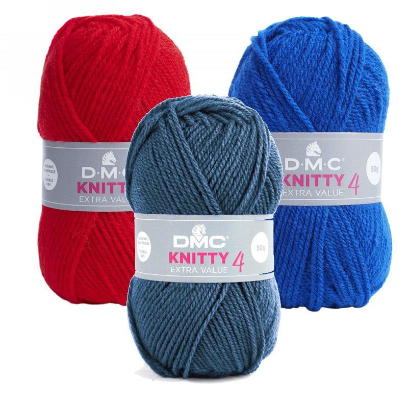 Ovillo de lana acrílica Knitty 4, formato de 50 gr, en tonos lisos, de la marca DMC.