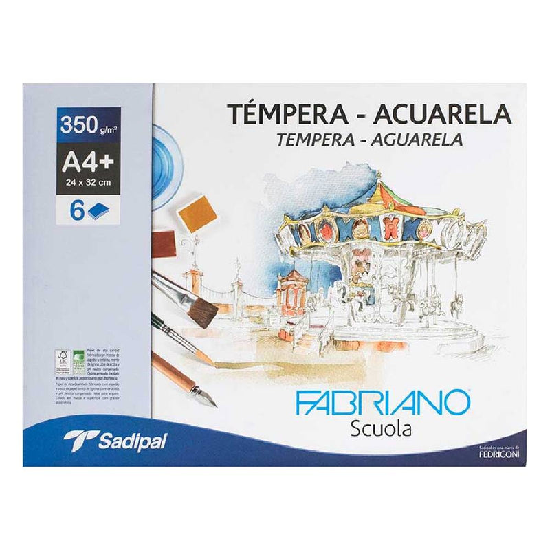Pack de 6 hojas de acuarela y/o témpera de alta calidad y gramaje de la marca Fabriano Scuola.