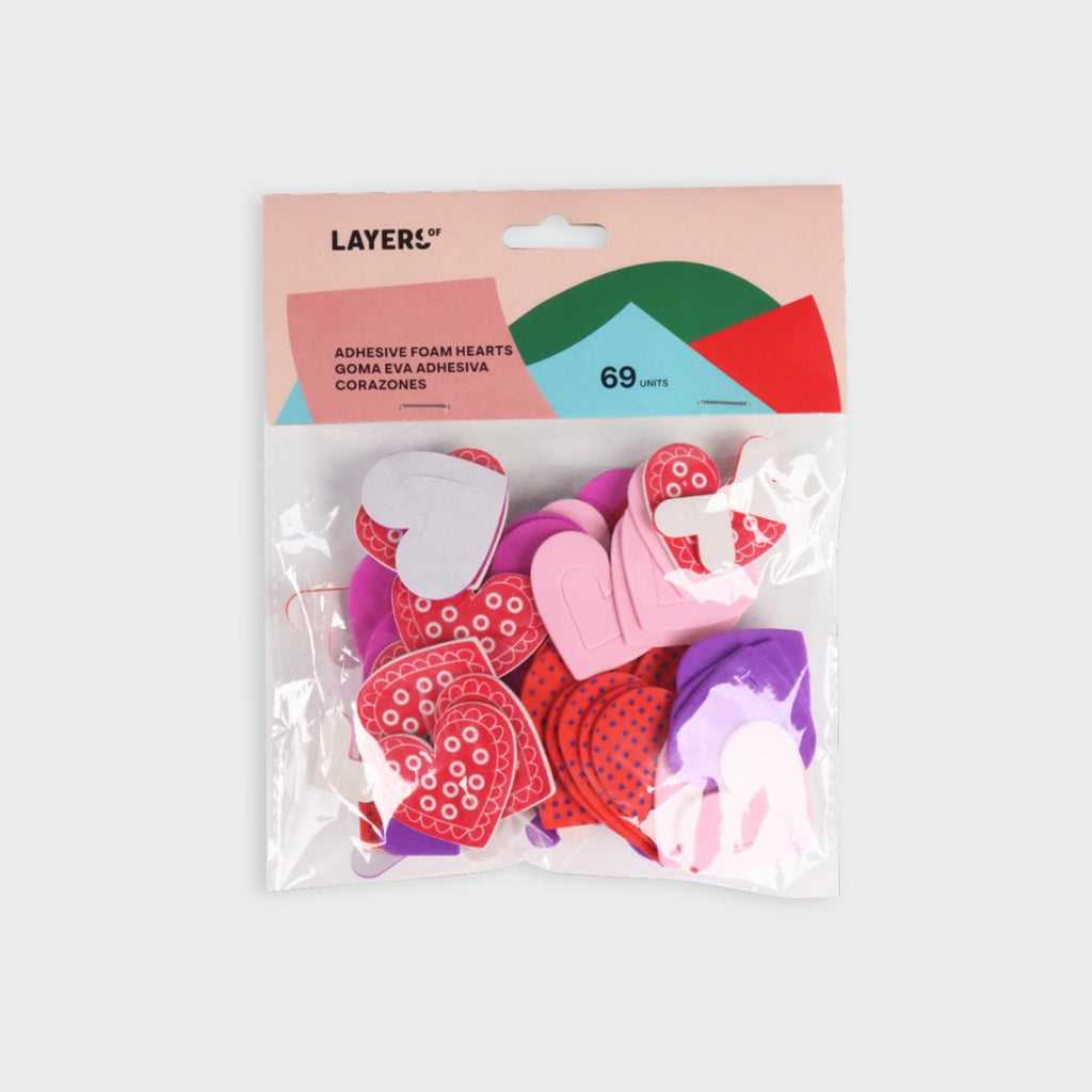 Pack 69 Corazones de Goma Eva Adhesiva de la Marca Layers Of