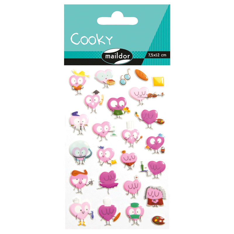 Adhesivos Cooky Corazón Oficios para Niños de 7,5x12cm.