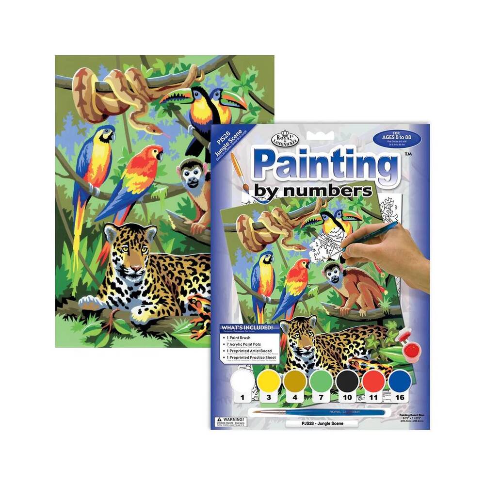 Explora la naturaleza y deja fluir tu creatividad con el Set Painting by Numbers Jungla de Royal & Langnickel. Este kit te permite pintar paso a paso una vibrante escena selvática, repleta de detalles y color, gracias a la técnica de pintar por números, ideal tanto para principiantes como para aficionados al arte.