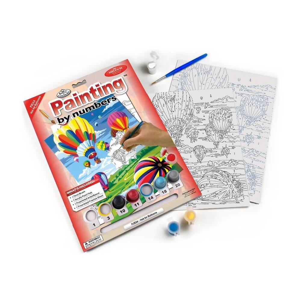 Explora tu lado artístico con el Set Painting by Numbers Globos Aerostáticos de Royal & Langnickel. Este kit de pintura por números te permitirá dar color a un paisaje lleno de encanto con majestuosos globos surcando el cielo, una opción perfecta para relajarte mientras creas tu propia obra.