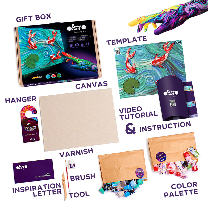 Contenido del Kit de Pintura 3D Arte Sensorial Peces KOI: