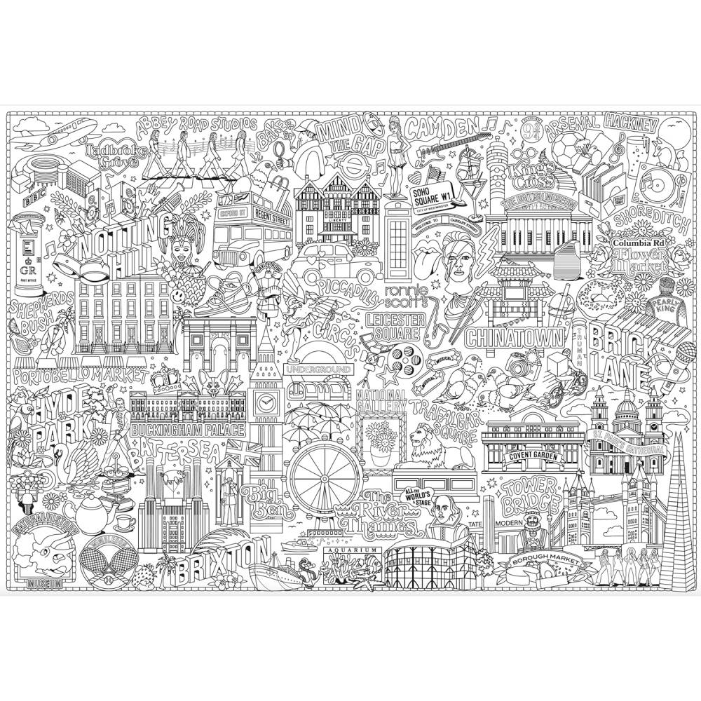 La artista Linda Baritski te trae este Póster gigante para colorear con diseños inspirados en las figuras y los elementos más icónicos de Londres. El Big Ben, el London Eye, Notting Hill... ¡y todo lo que te puedas imaginar!