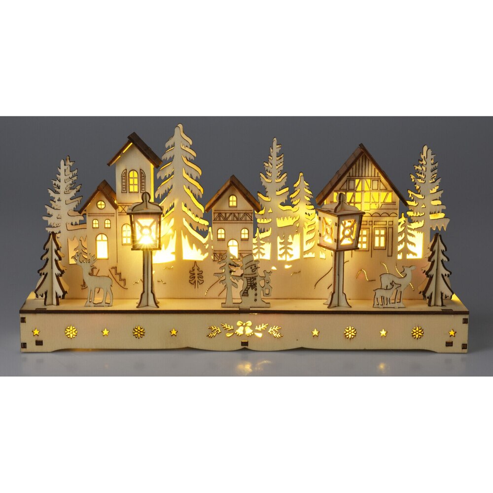 Decoración Navideña Pueblo Nevado de Madera con Luces LED de la marca Koopman