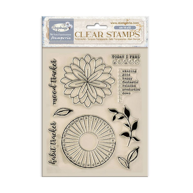 Pack de Sellos Acrílicos Transparentes para medir los hábitos colección 'Dewdrops' de la marca Stamperia