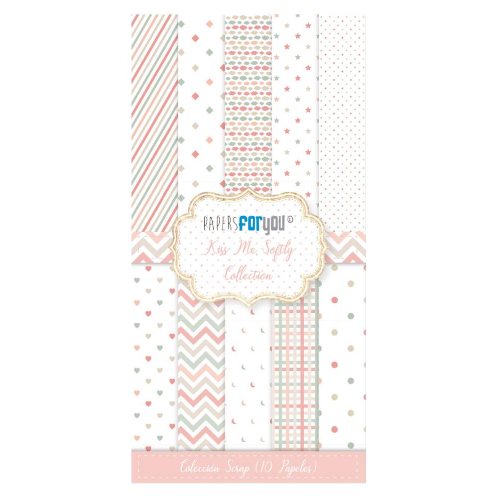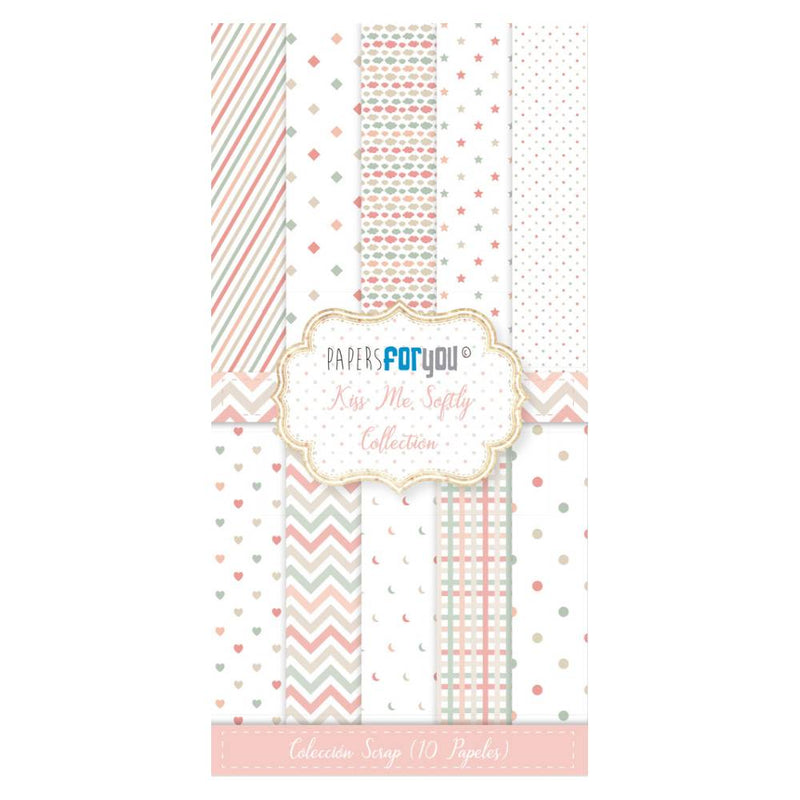Bloc 10 Papeles Scrap Doble Cara 15x30cm Colección "Kiss Me Softly" de la marca Papers for you.