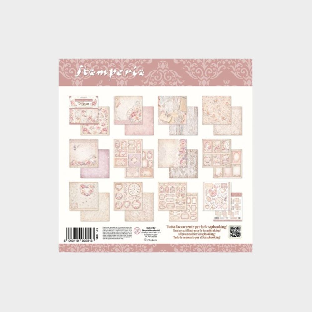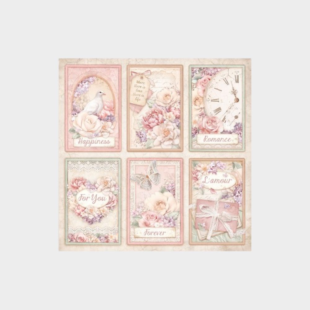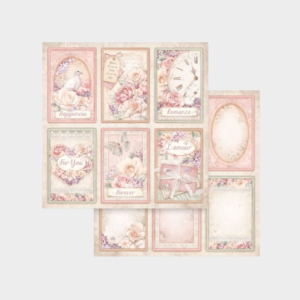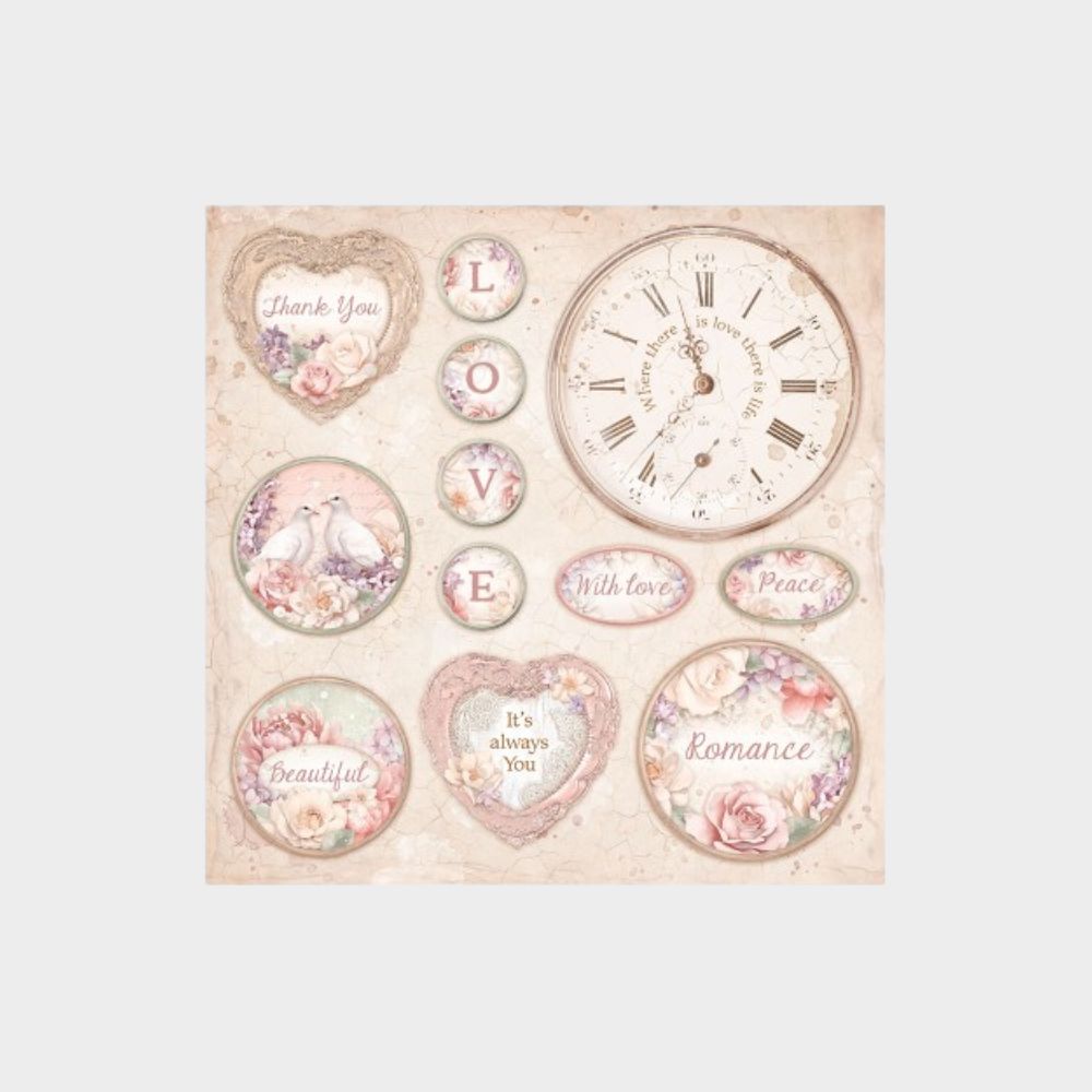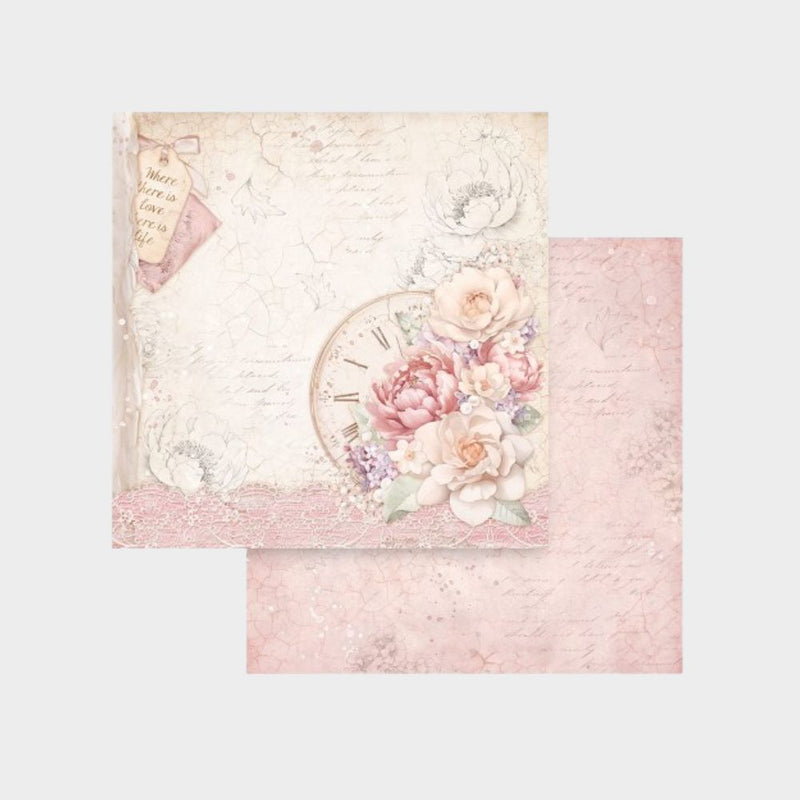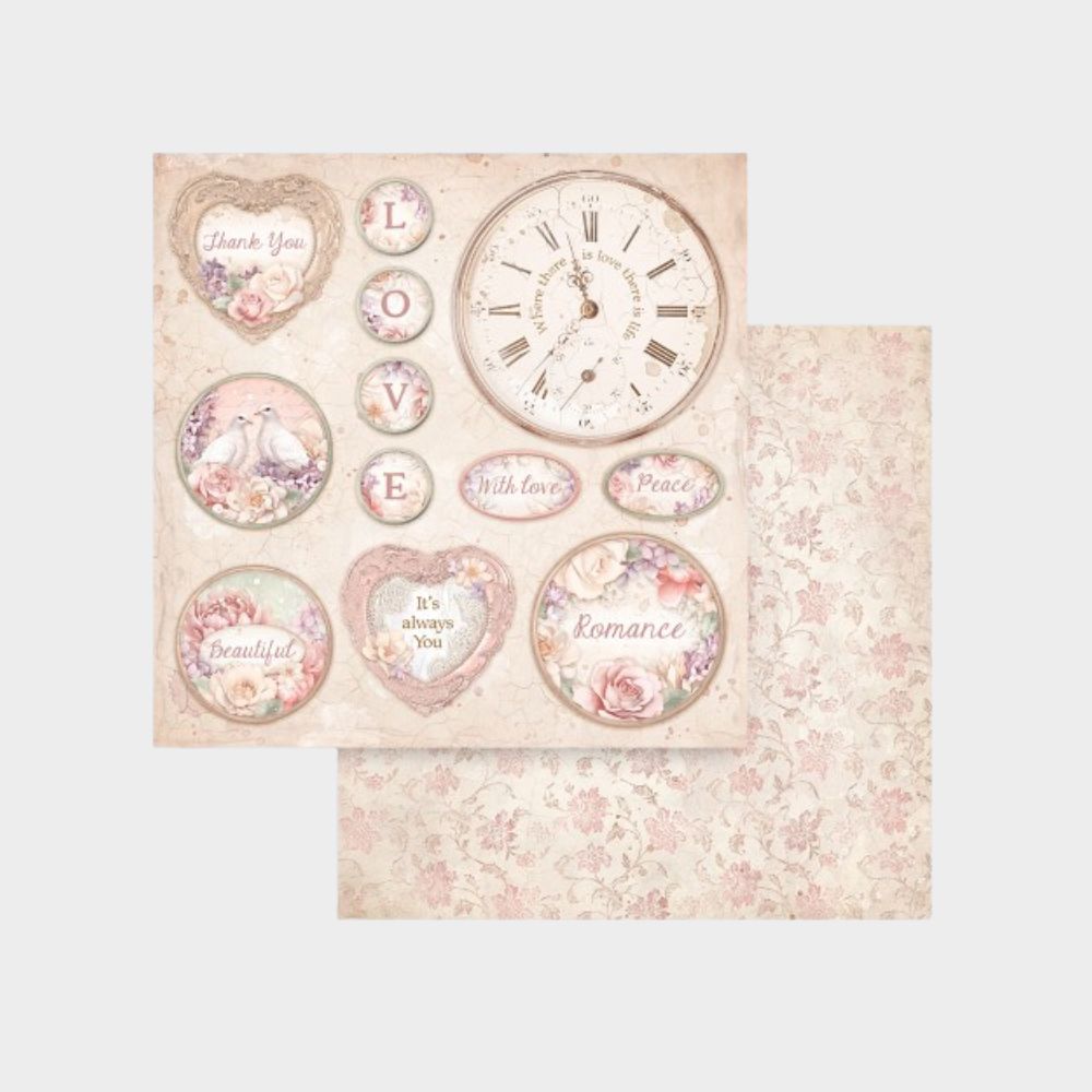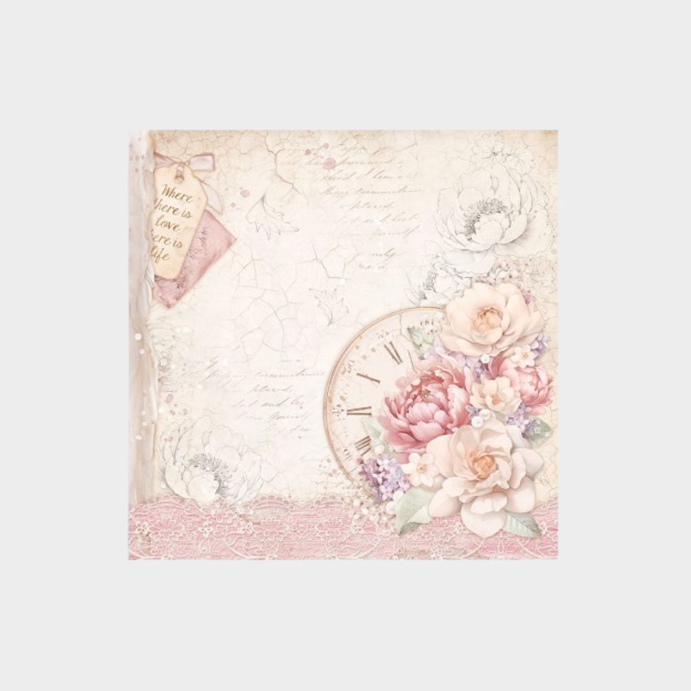 Set 10 Papeles Scrap 30x30cm, Colección Romance Forever modelo Reloj de la marca Stamperia.